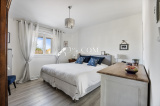 Le coin nuit bien distinct se compose au rez-de-chaussée d’une chambre avec douche, et à l'étage de trois autres chambres bénéficiant d’une salle d’eau privative pour l'une, ainsi qu'une salle de bains et un grand dressing équipée de rangements sur mesure.