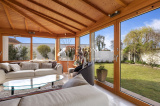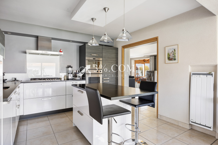 Baignée de lumière, particulièrement bien pensée dans sa distribution, cette maison vous offre une entrée desservant une vaste pièce de vie d’environ 63m2, orientée sur le JARDIN exposé SUD SANS VIS-A-VIS, comprenant un espace bureau/salle de télévision, salon avec verrière donnant sur le jardin, une salle à manger, agrémenté d’un poêle, une cuisine ouverte aménagée et équipée de 43 m² bénéficiant d’un bel espace dînatoire ainsi qu’une lingerie.