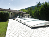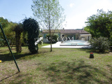 Nous trouvons également, un abri bois / atelier de jardin, une piscine de 7,50x4 avec abri coulissant et un barbecue.
