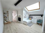 - Superficie totale : 91 m² au dernier étage d’un immeuble de 2 étages