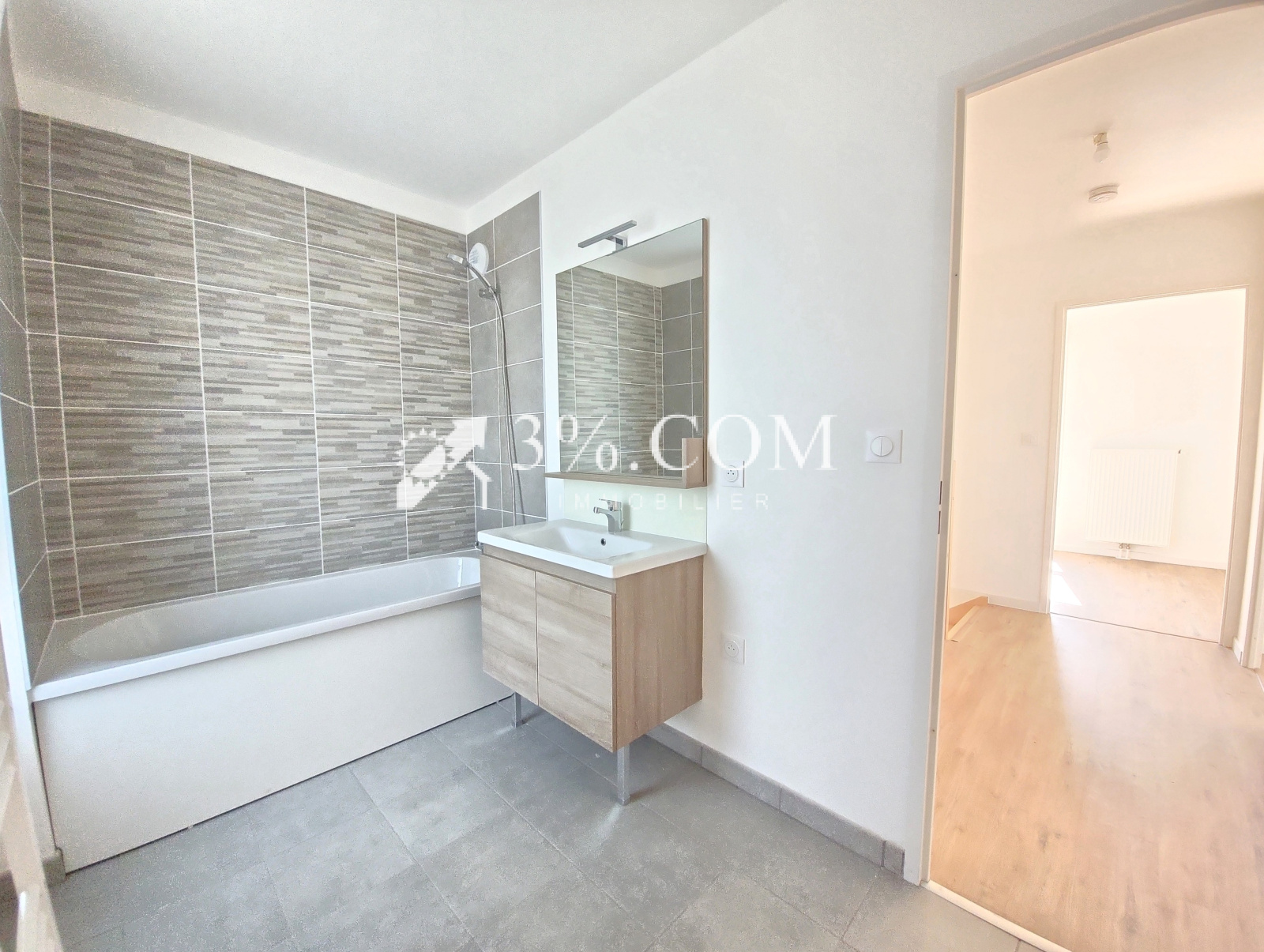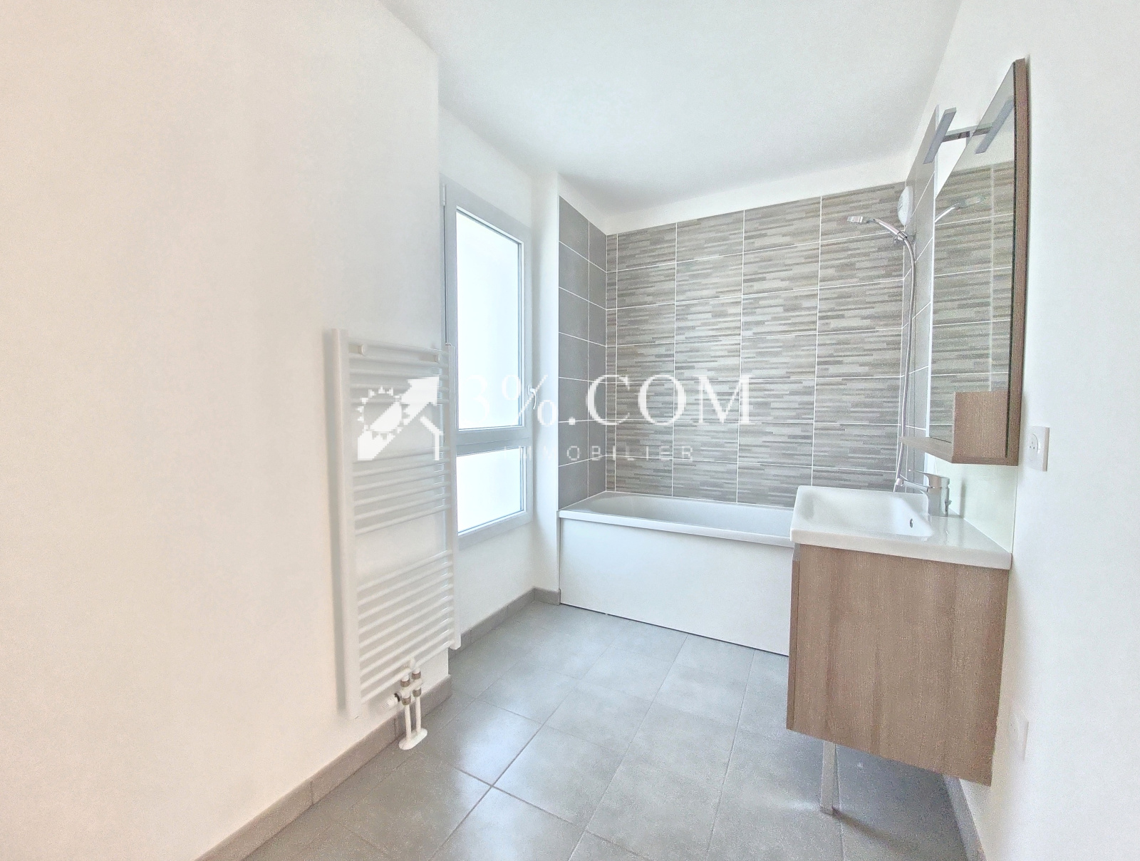 - Salles de bains : 1 à l’étage une avec baignoire équipée d’un radiateur sèche-serviettes et robinetterie thermostatique