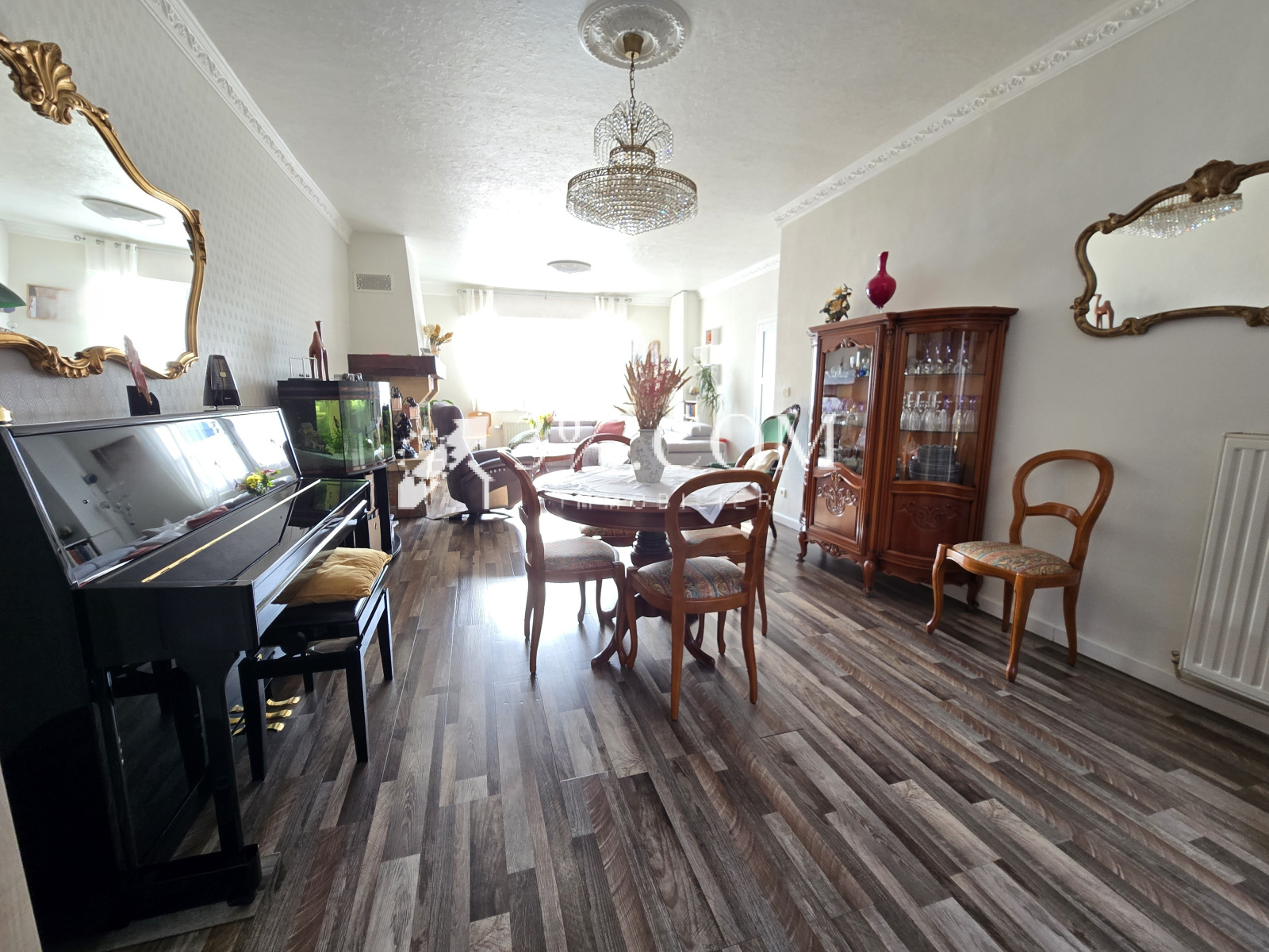 Au rez-de-chaussée, vous découvrirez une spacieuse pièce de vie de 59 m² avec cuisine, très lumineuse, ainsi qu’une véranda donnant sur une cour agréable. Une cave de 35 m² complète également le bien.