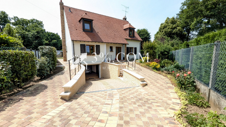 3% POISSY IMMO vous présente : Secteur très recherché de Verneuil (78) A 5 min de la gare et des écoles( proche Notre Dame) ; Maison d'architecte en parfait état d'environ 147m2 habitable, édifiée sur un terrain paysagé arboré d'une superficie de 928m2 -Au rez de chaussée : Une entrée, un séjour avec sa cheminée à insert, une cuisine entièrement équipée, un bureau/chambre, une penderie 3 portes et un WC. -A l'étage : Un dégagement, 2 belles chambres avec placard de rangement, un WC séparé, UNE SUITE PARENTALE AVEC BAIGNOIRE D'ANGLE, une salle d'eau -Au sous-sol TOTAL carrelé : Une buanderie avec évier, une FAMILY ROOM 25m env, une cave à vins gravillonnée et un garage, un dégagement de 8m² stockage vélo/moto/garde manger