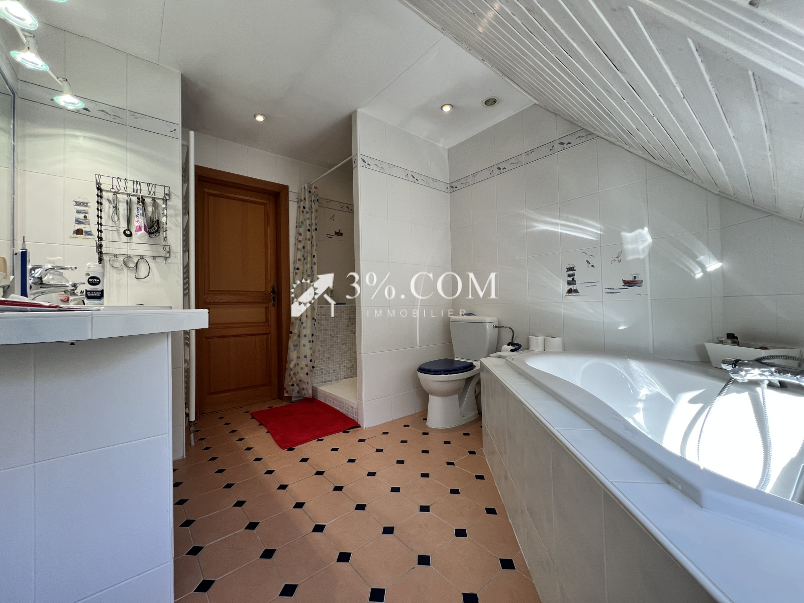 - 1 salle de bain (baignoire, douche, double vasque, toilette).