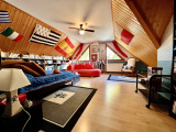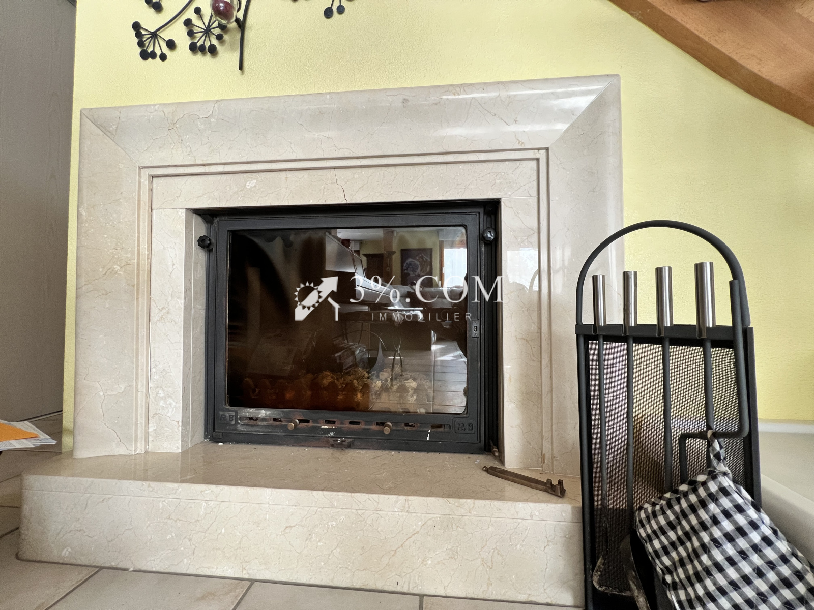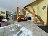 - 1 salon/séjour/salle à manger d’environ 54m² équipé d’une cheminée avec accès au jardin et à la terrasse.