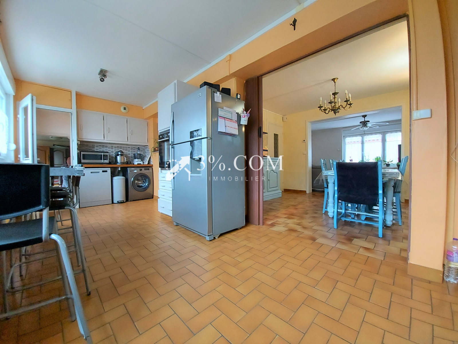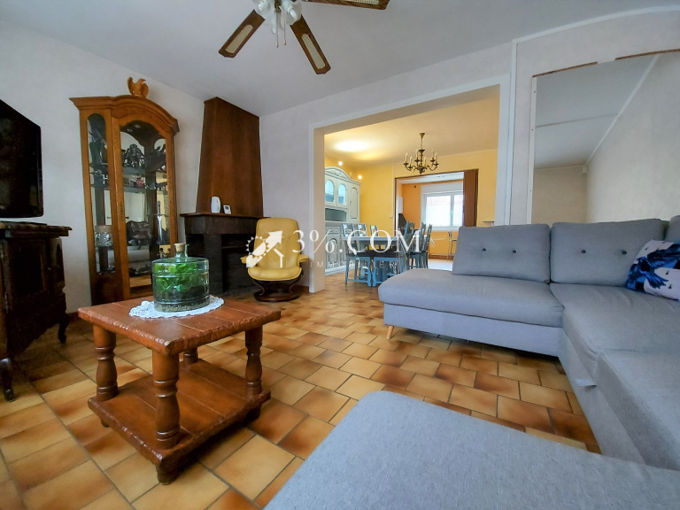 En secteur calme - Semi individuelle offrant hall d'entrée, salon séjour ouvert sur cuisine.