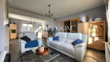 Spacieux hall d'entrée, large et lumineux séjour traversant avec cheminée comtemporaine, belle cuisine entièrement équipée.