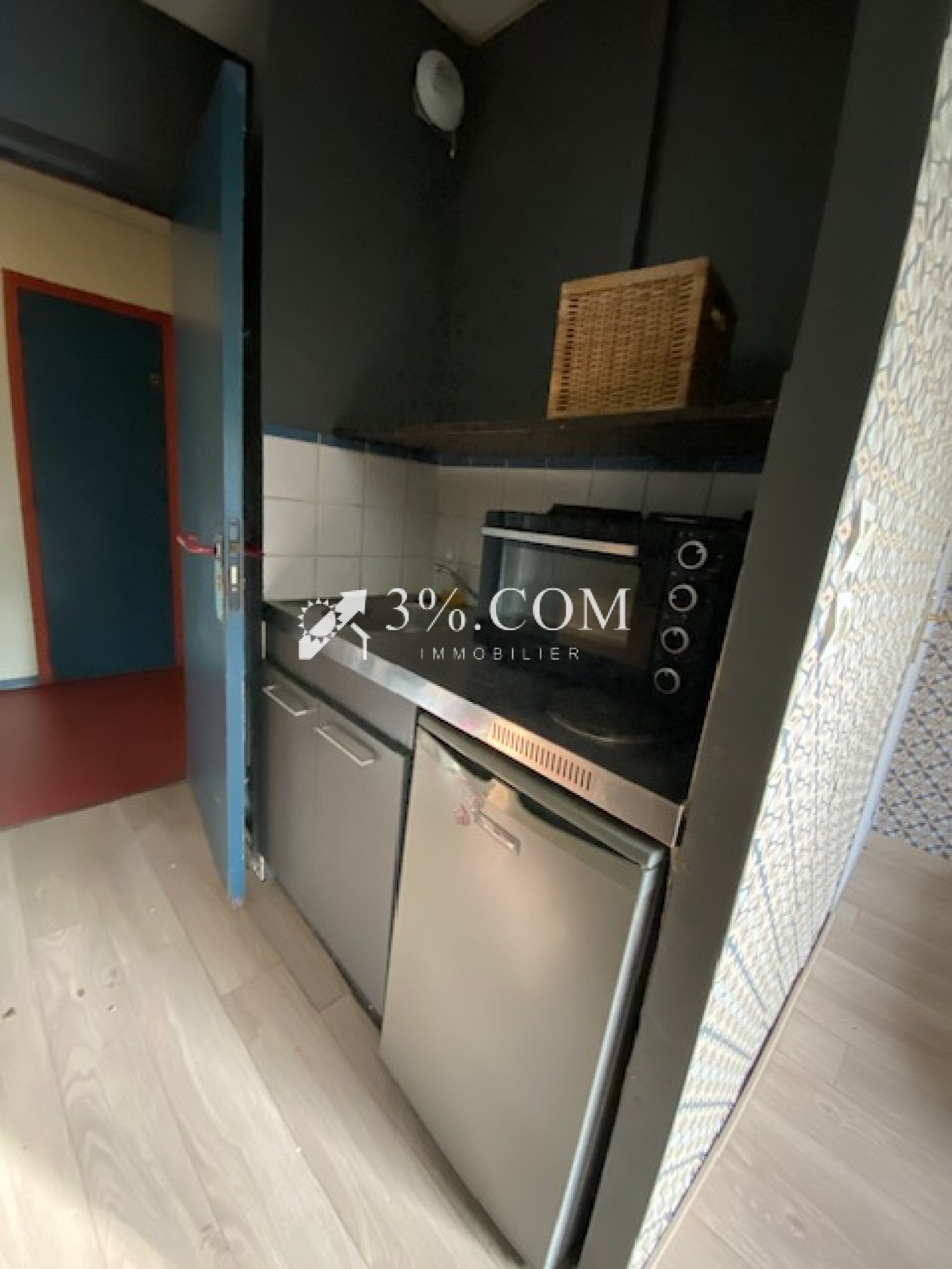 Idéal Investisseurs ! Studio de 15,67 m² , situé au 1 er étage de la résidence, exposé plein Sud, comprenant : une entrée desservant une kitchenette équipée (plaque électrique, refrigérateur, évier et four ), une chambre de 9m² et une salle d'eau avec WC, meuble vasque et douche.