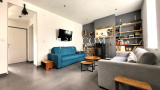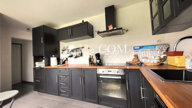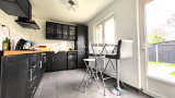 Séjour lumineux avec poêle granules, cuisine équipée, salle de bains avec douche et baignoire !