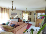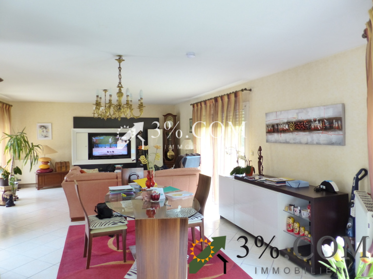 Séjour / salon lumineux de 42 m², ouvert en partie sur la cuisine de 13 m², et donnant accès à sa terrasse en partie couverte.