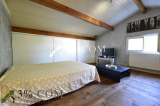 A l’étage les combles aux poutres apparentes ont été aménagés avec une salle de bain et WC et 2 chambres climatisées :