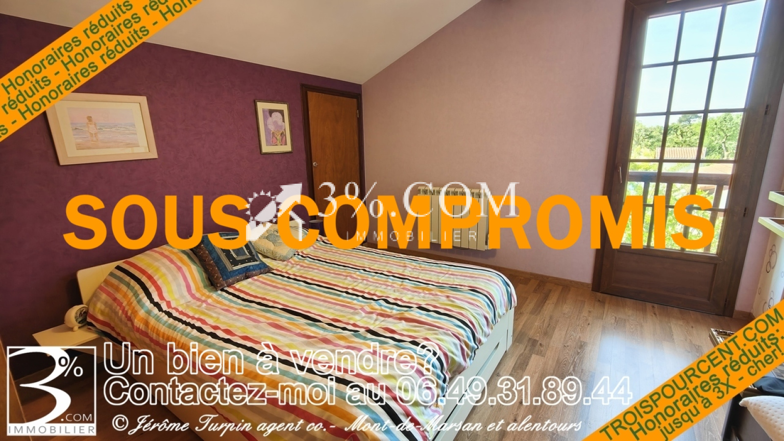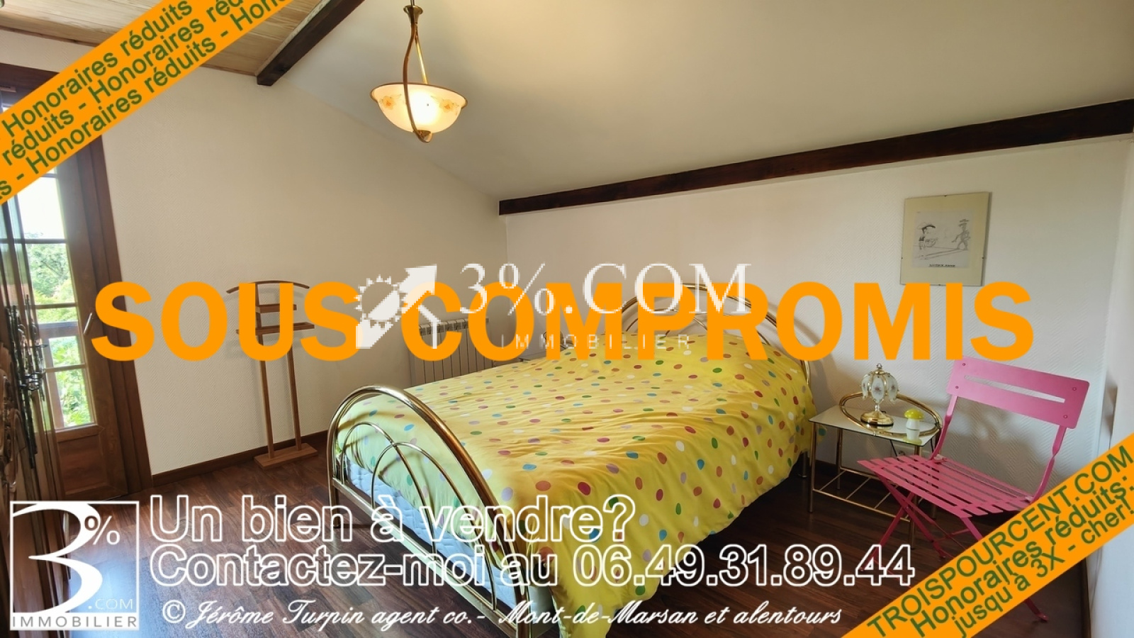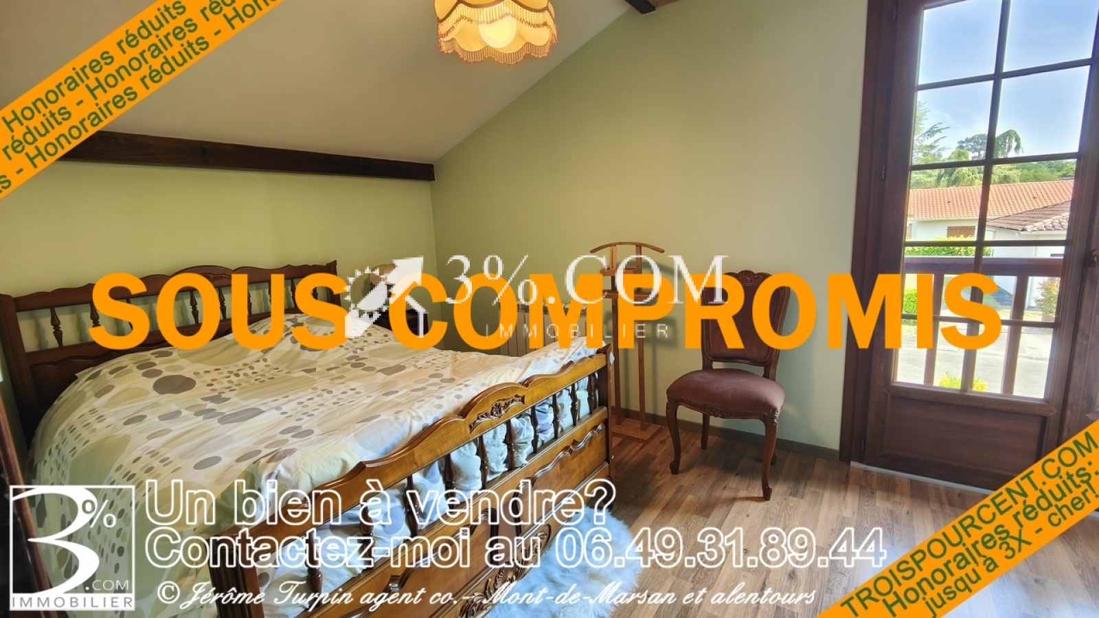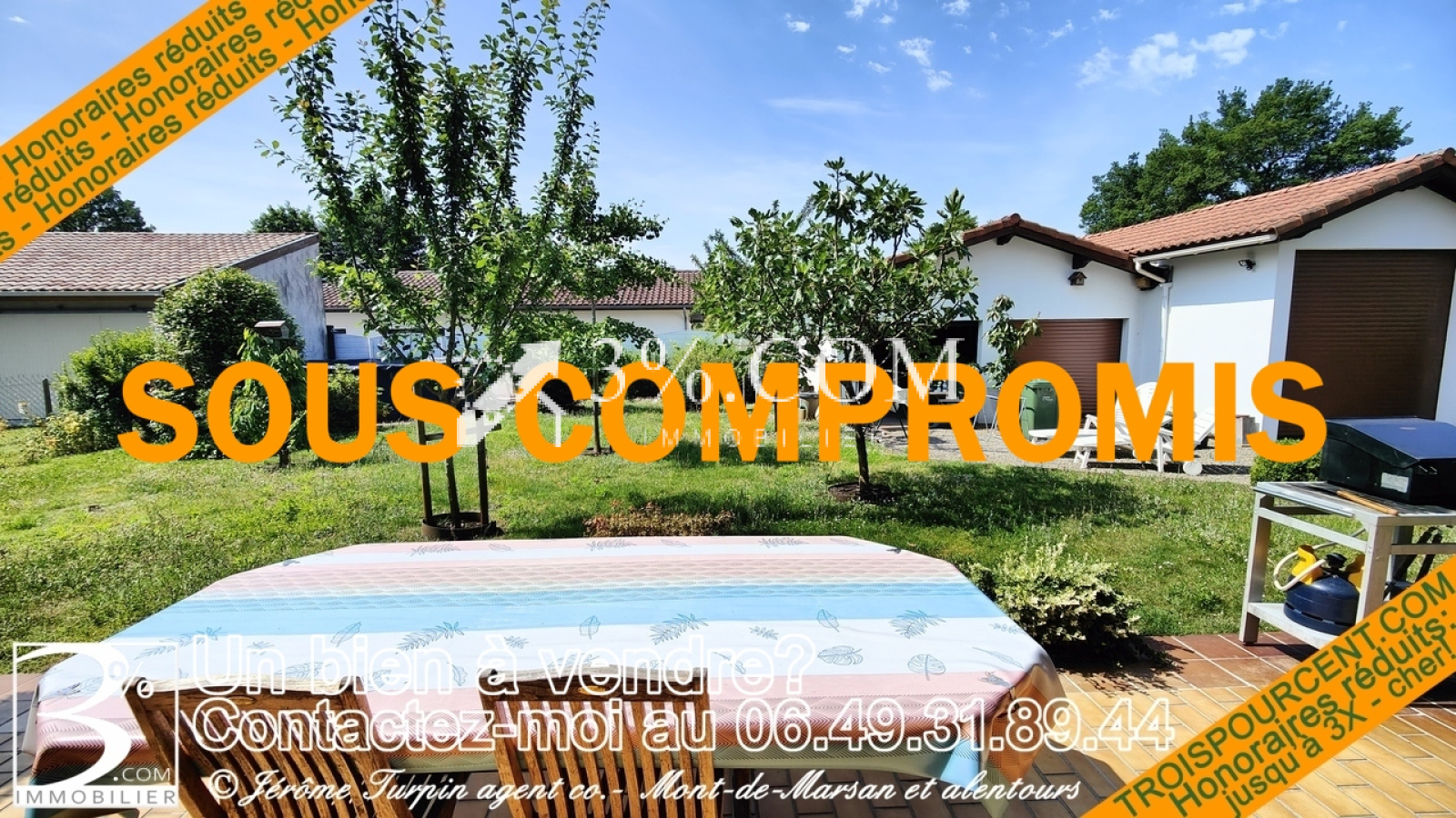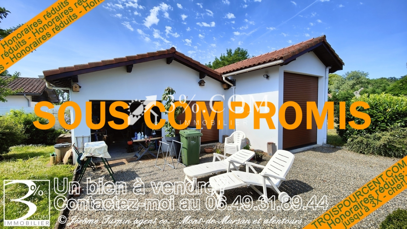 3%.COM immobilier Mont De Marsan maison de 1976 en parfait état composée en RDC d’un vaste séjour d’une cuisine toutes équipées une suite parental ,1 WC 1 buanderies cellier avec accès à un grenier à l’étage : 3 chambres plus une salle de bain avec WC.