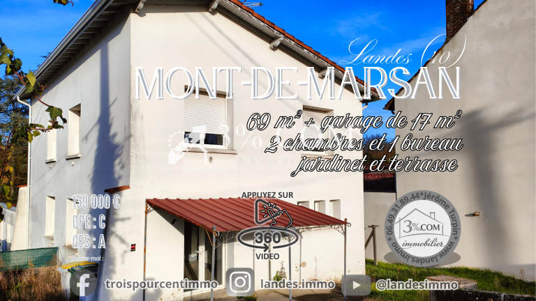 Située à Mont-de-Marsan, à proximité immédiate du centre-ville, cette maison mitoyenne offre un cadre de vie pratique et agréable, idéal pour un premier achat, un couple ou un investissement locatif.