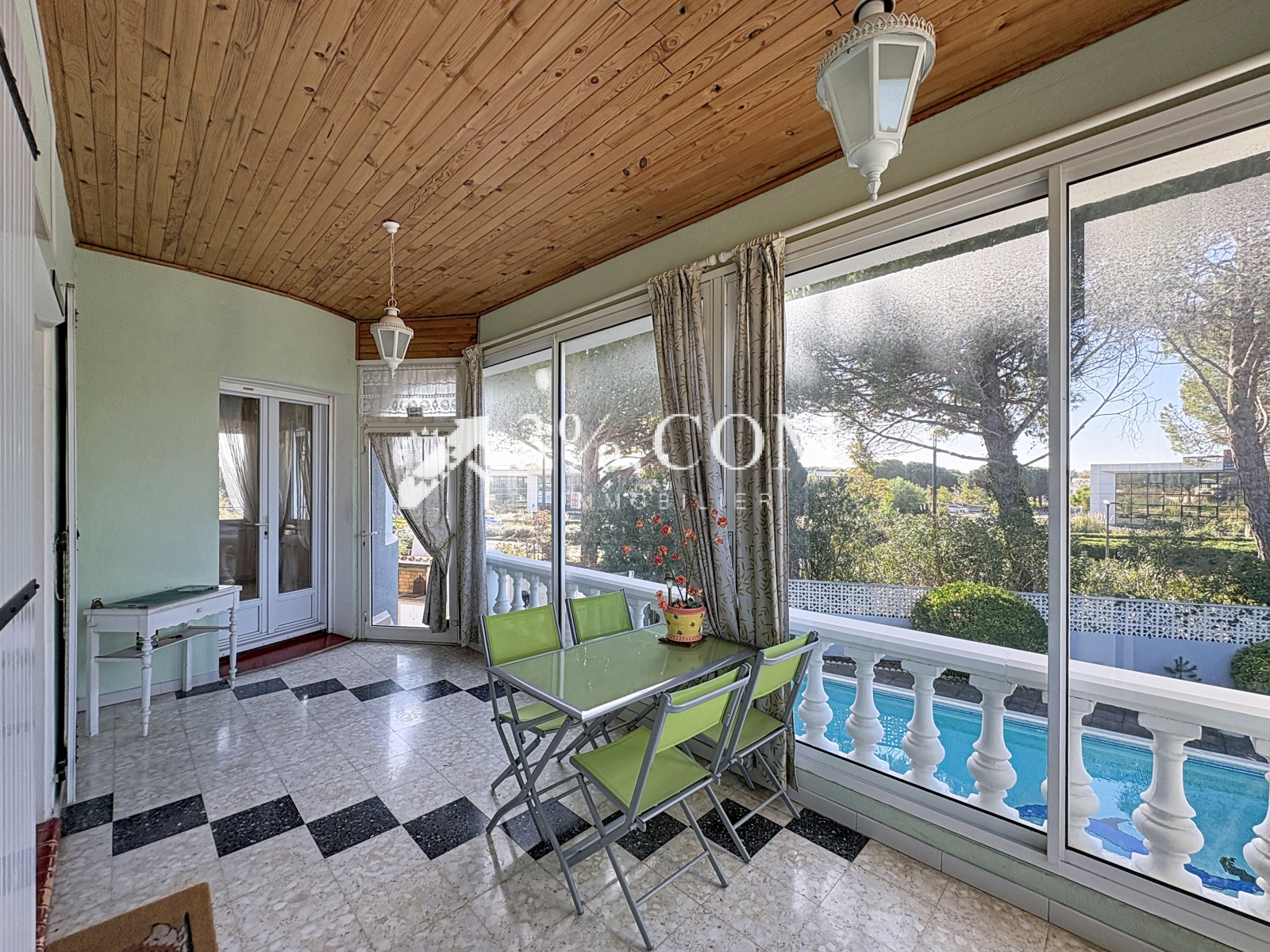 à la véranda et au balcon,